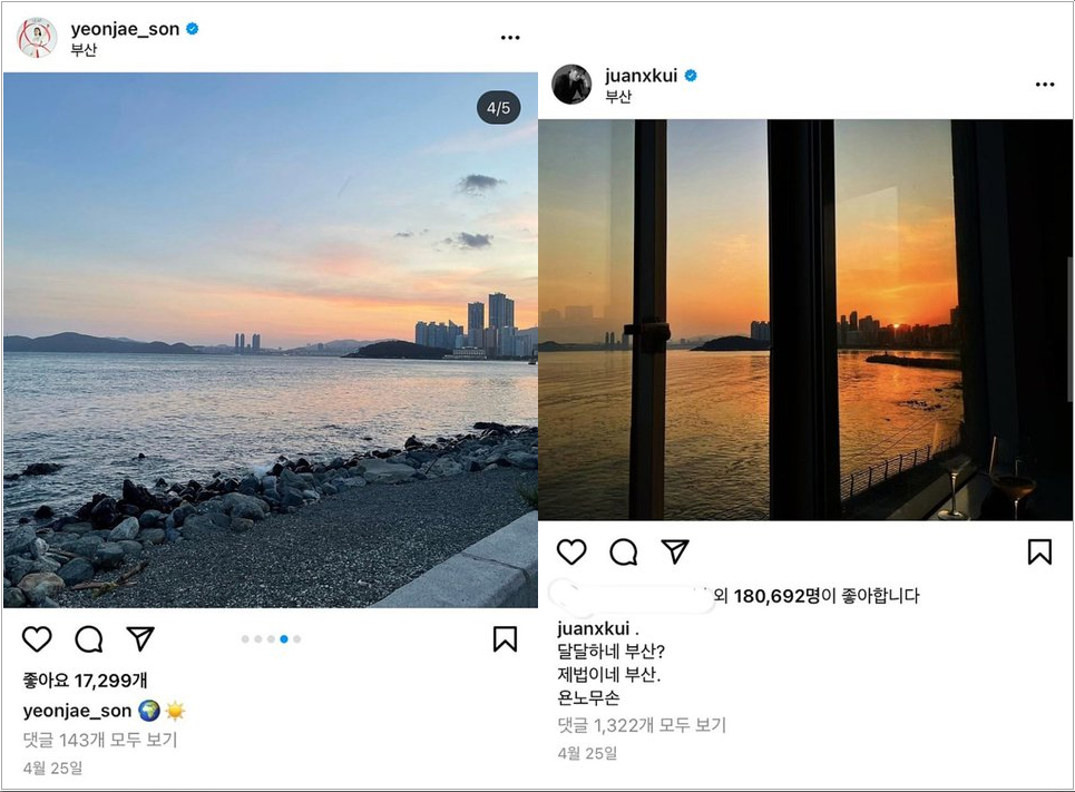 해당 인스타그램에 같은날올라온 두사람의 게시물